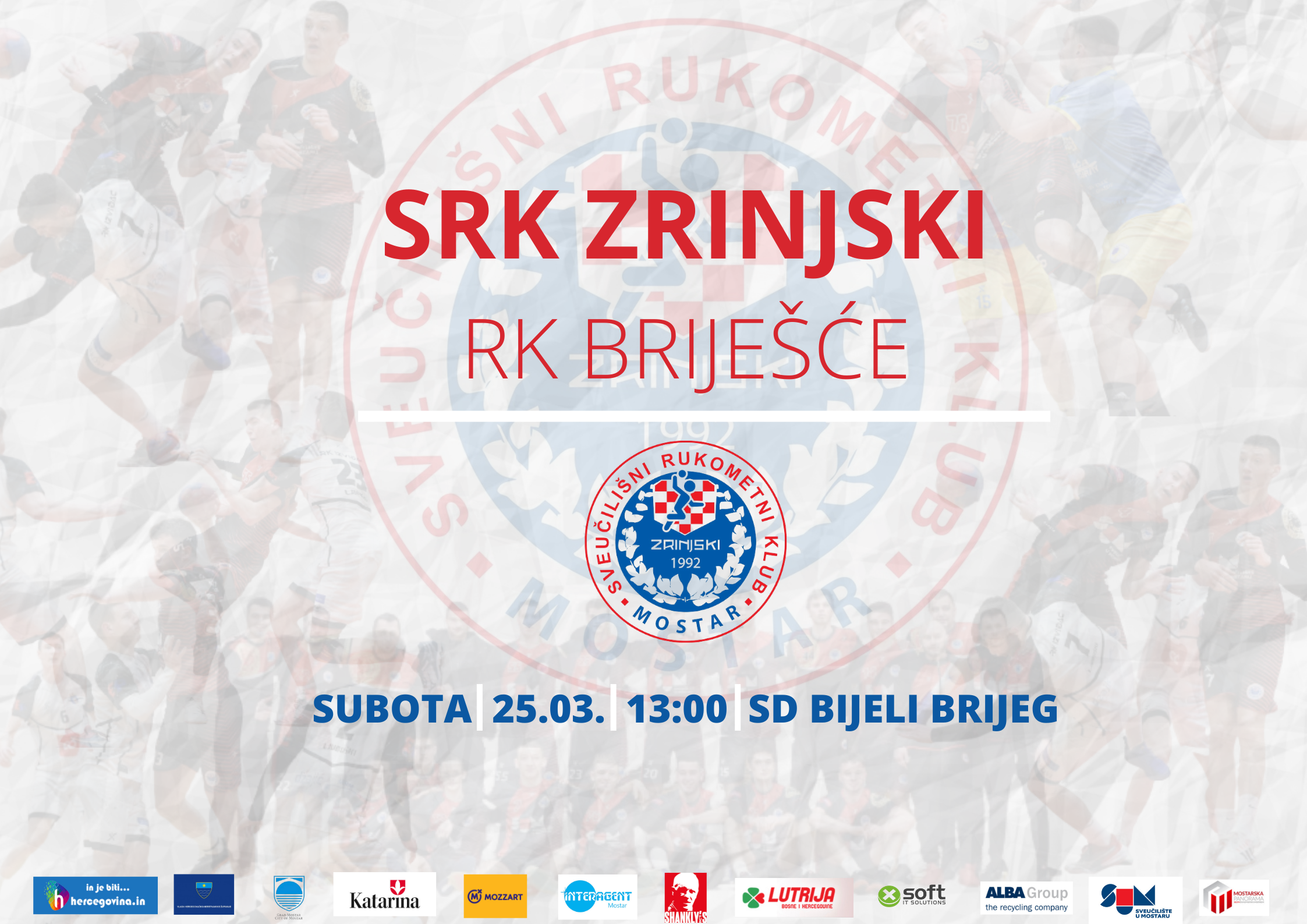 U subotu 25.03.2023. s početkom u 13:00 sati u Sportskoj dvorani Bijeli Brijeg održat će se rukometni dvoboj SRK Zrinjskog protiv RK Briješća.
